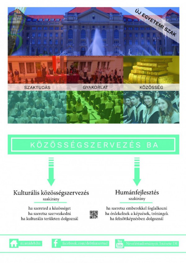 2017 szeptemberétől megújul a fiatalok és felnőttek művelődésével foglalkozó képzés, amely Debrecenből indult el 60 évvel ezelőtt, és a megújult szak is elsők között indulhat el Debrecenben. Az egykori népművelő, majd művelődési menedzser és művelődésszervező szakok utódja a közösségszervezés alapszak lesz.